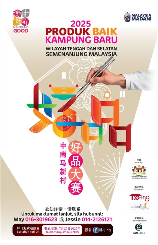 本次大赛报名完全免费,有意者请于7月25日前通过“新村ing”面子书或浏览 kampunging.com.my/kampunggood2025 进行线上报名。