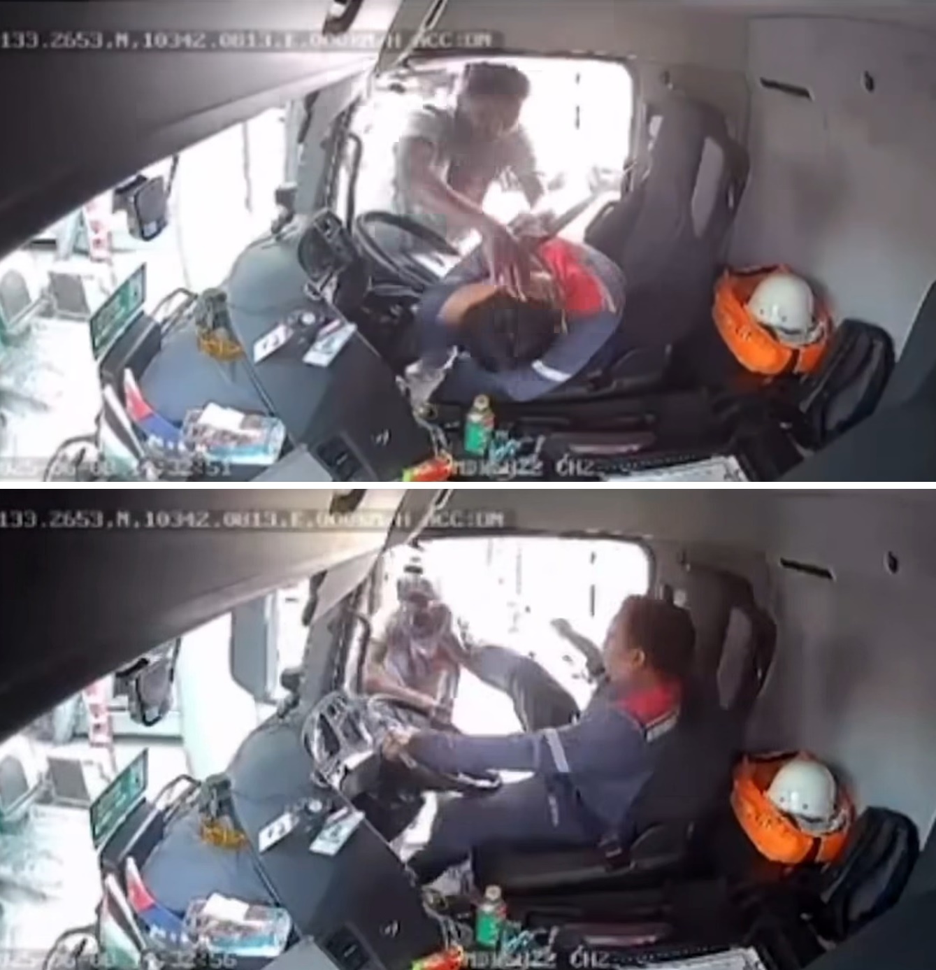 (新山13日讯)不满在收费站被鸣笛,轿车乘客怒火中烧,竟爬上罗厘找司机打架,结果罗厘司机反用脚猛踹,把对方踢下罗厘。