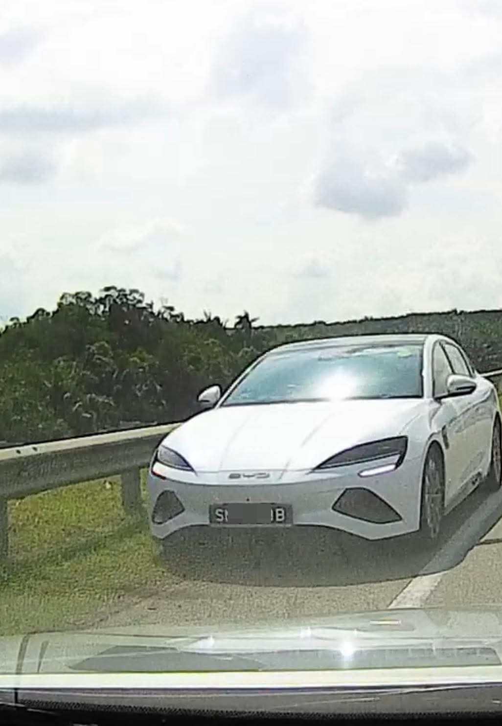 网上流传,昨日早上约11时31分,在士乃─迪沙鲁大道55公里处,有一辆新加坡注册的白色轿车,逆向行驶至紧急车道处。