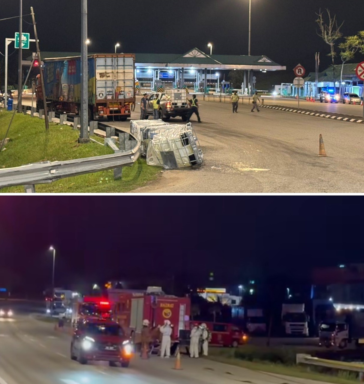 峇株巴辖交通调查与执法组于傍晚约6时,接获有关化学品泄漏事件的消息,并派遣一支队伍前往现场,协助维持亚依淡收费站交通。