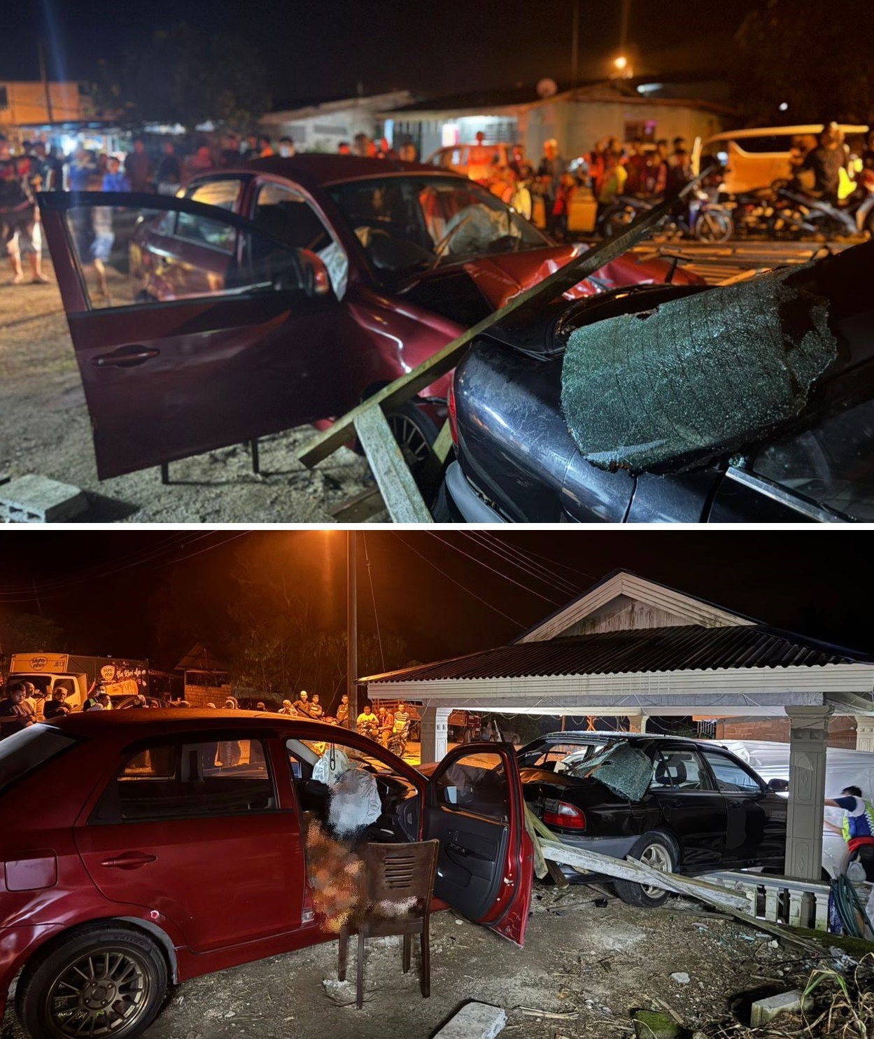 哥打丁宜警区主任尤索夫指出,车祸涉及Proton Saga、Proton Wira,还有一辆泊在屋前的Toyota Hiace轿车。
