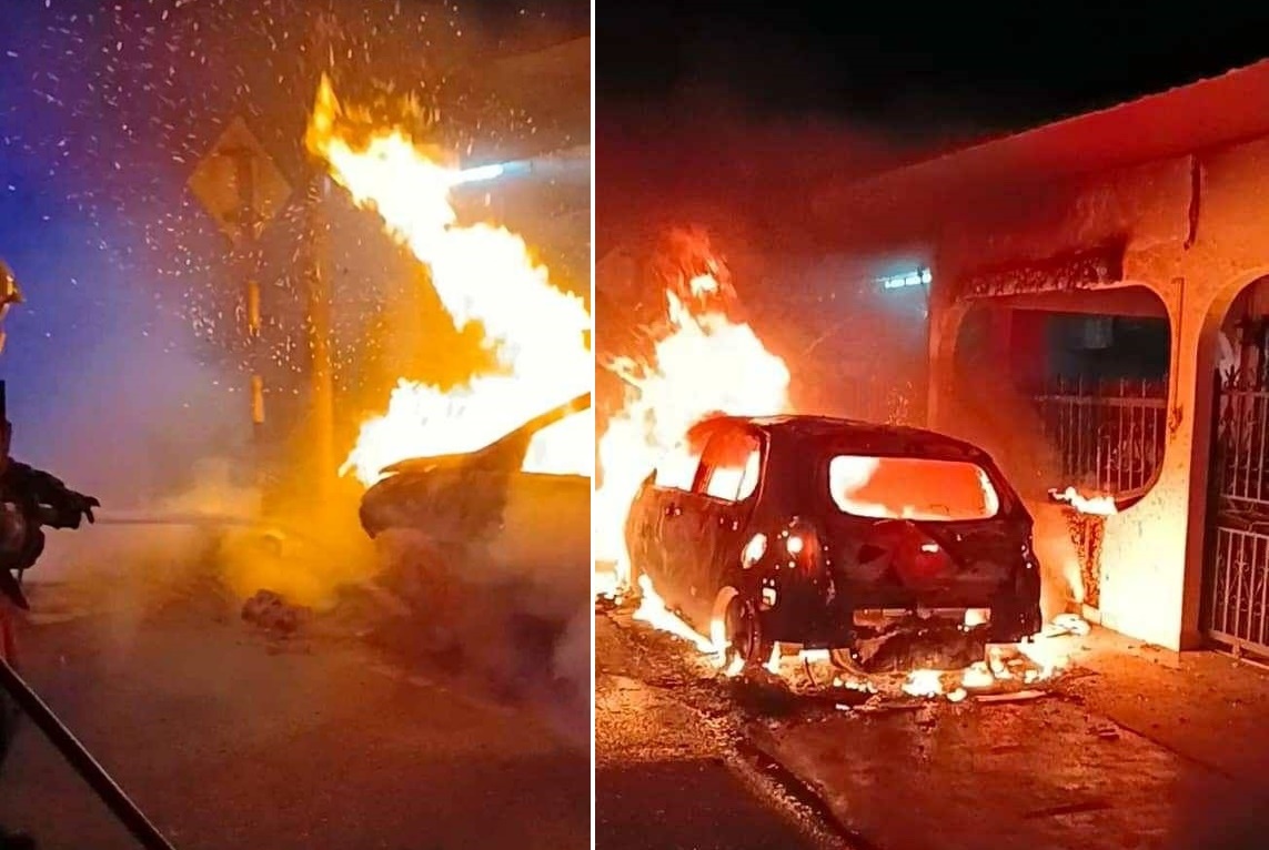 指挥官是Jahairi汇报,抵达现场后,发现一辆停放排屋前的 Perodua Axia 轿车着火,烧毁程度达90%。