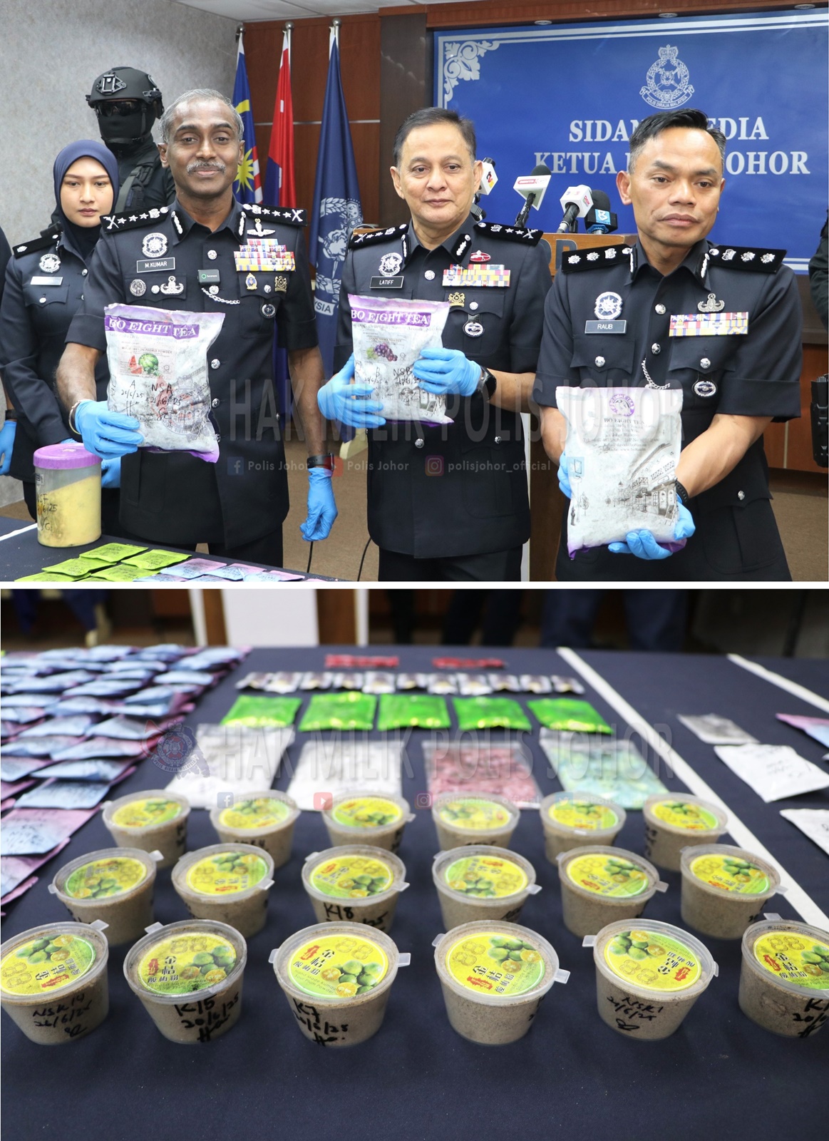 柔佛总警长拿督M古马昨日召开新闻发布会,宣布警方的战绩,指自今年初收集到的情报,在掌握证据后于6月20日下午3时30分,到6月21日清晨6时30分,展开三项突击行动,捣毁有关贩毒集团。
