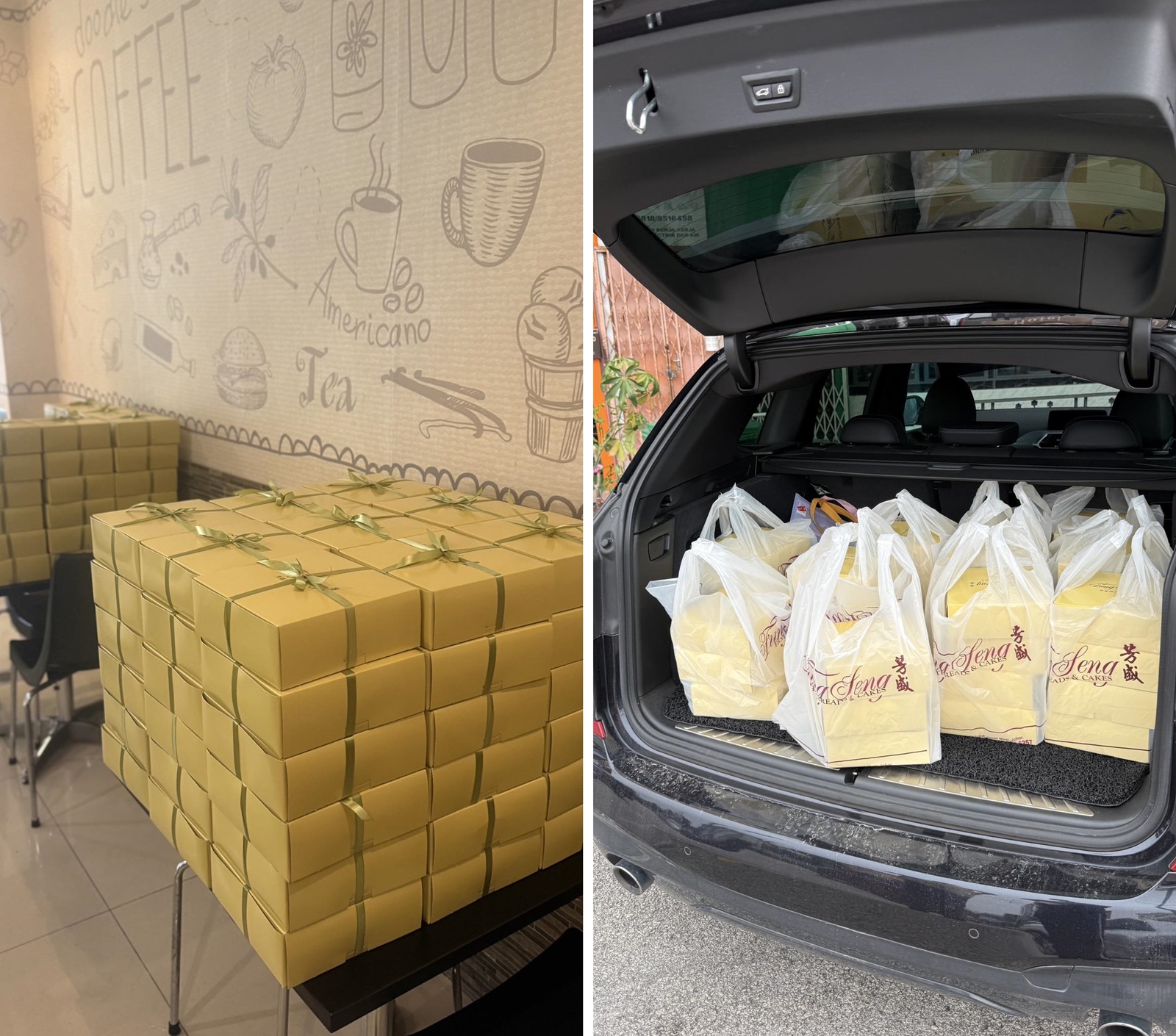 原本双方说好中午12时取货,但对方一早就联系芳盛面包西果屋,追问礼盒是否完成,接着便要求我们帮向一个供应商订货,声称是军人进树林要吃的口粮,总数60箱。