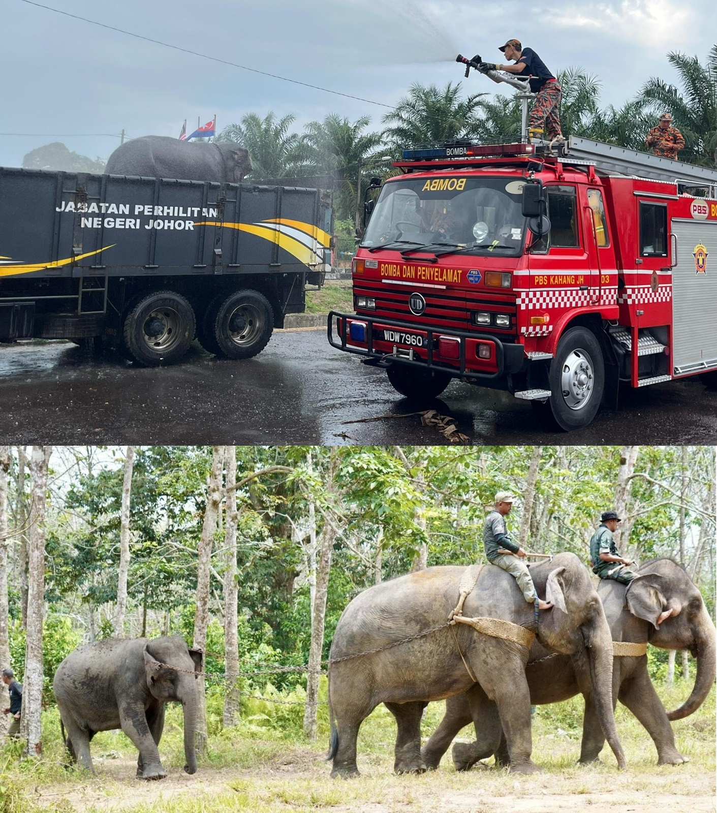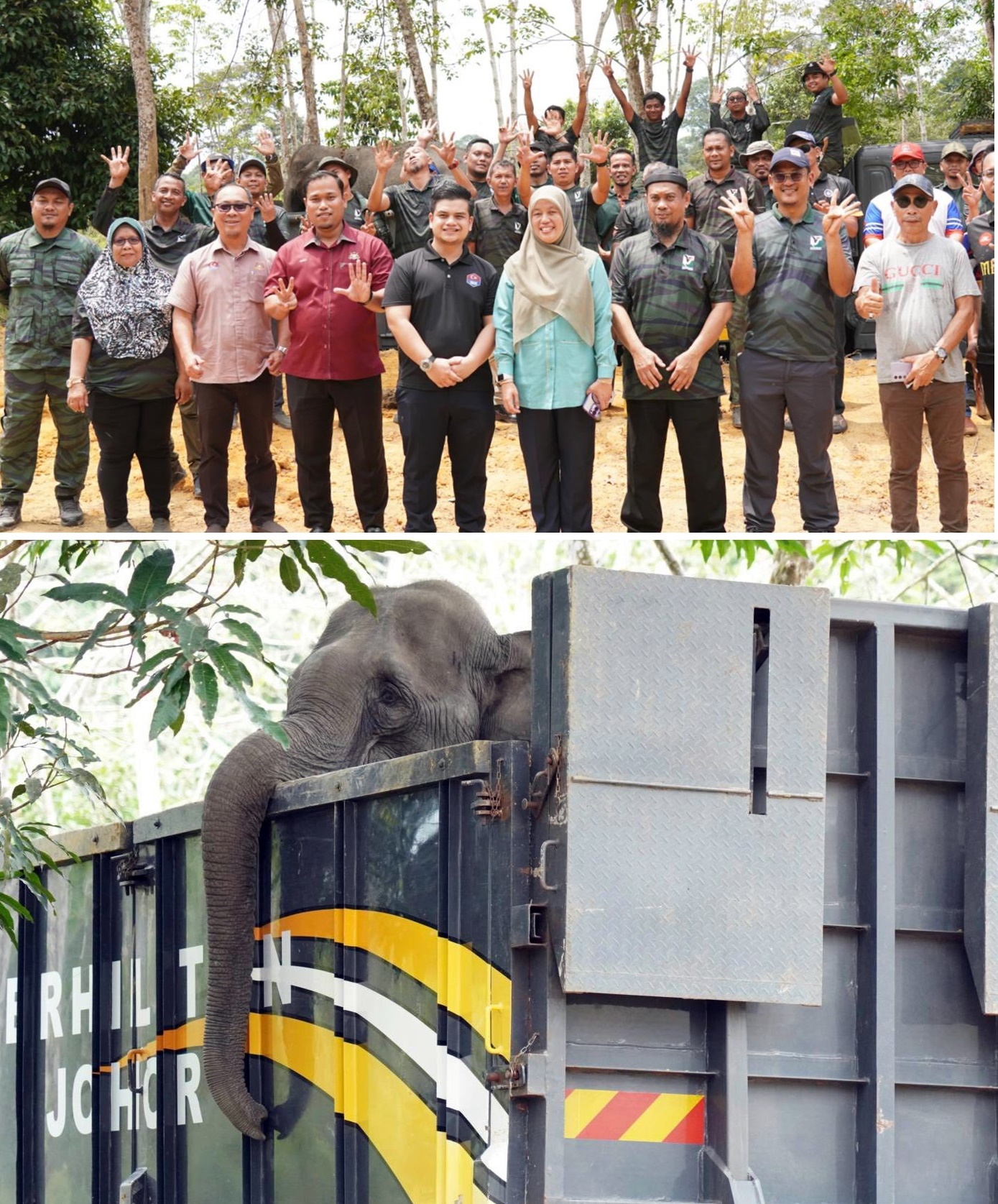 今日,在居銮Seri Lukut甘榜和甘榜甘榜附近的森林地带,由柔佛野生动物保护和国家公园局(Perhilitan)联合技术团队合作,将捕获的野象迁移。
