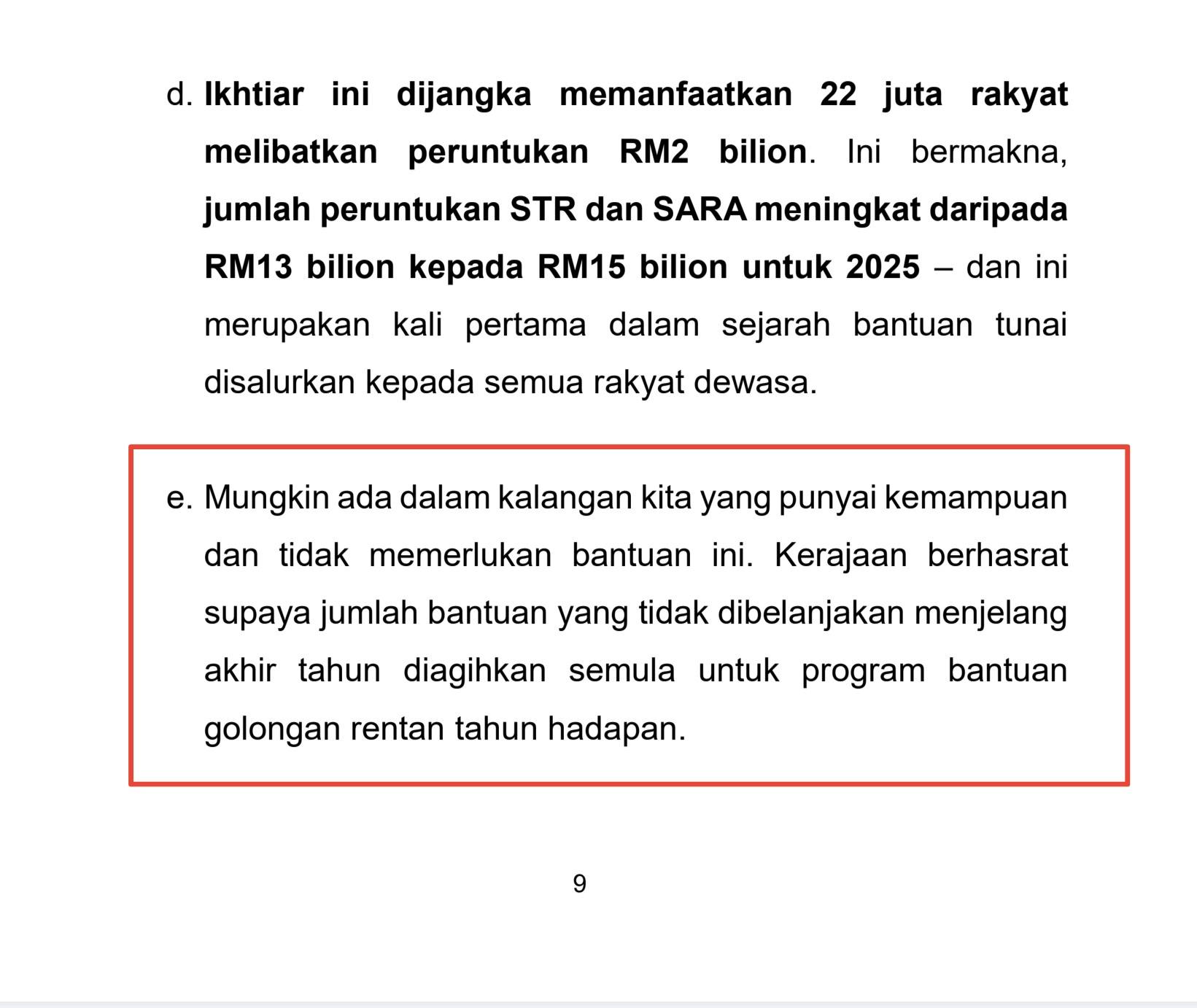 另外,民主行动党柔州主席兼古来国会议员张念群说,首相讲稿里已清楚说明,不需要这笔援助金或是想捐出这笔援助金者,有关金额将在12月31日后归还给政府,让政府用来协助明年符合SARA资格的人士。