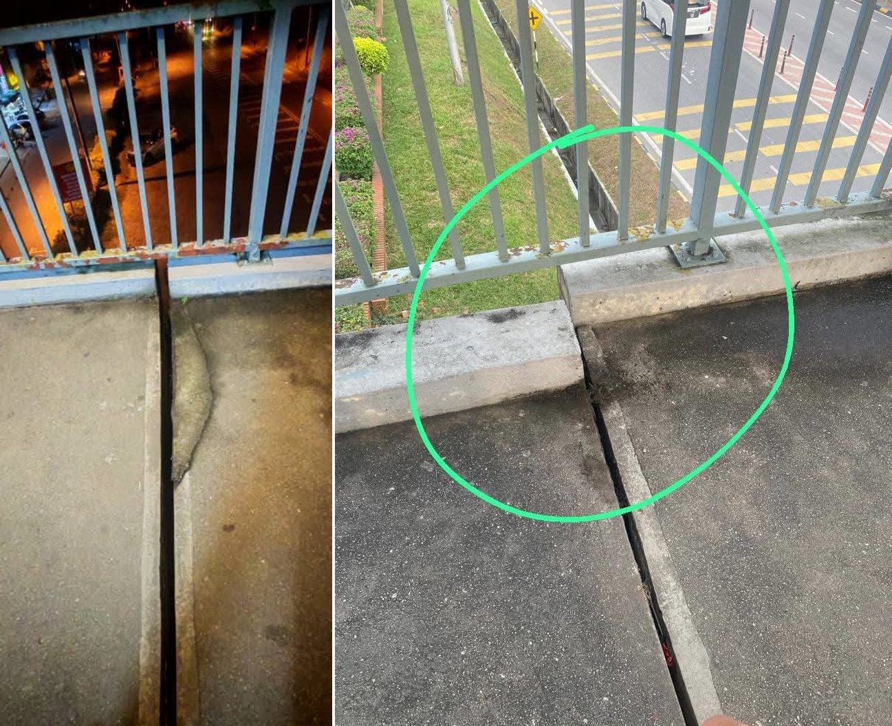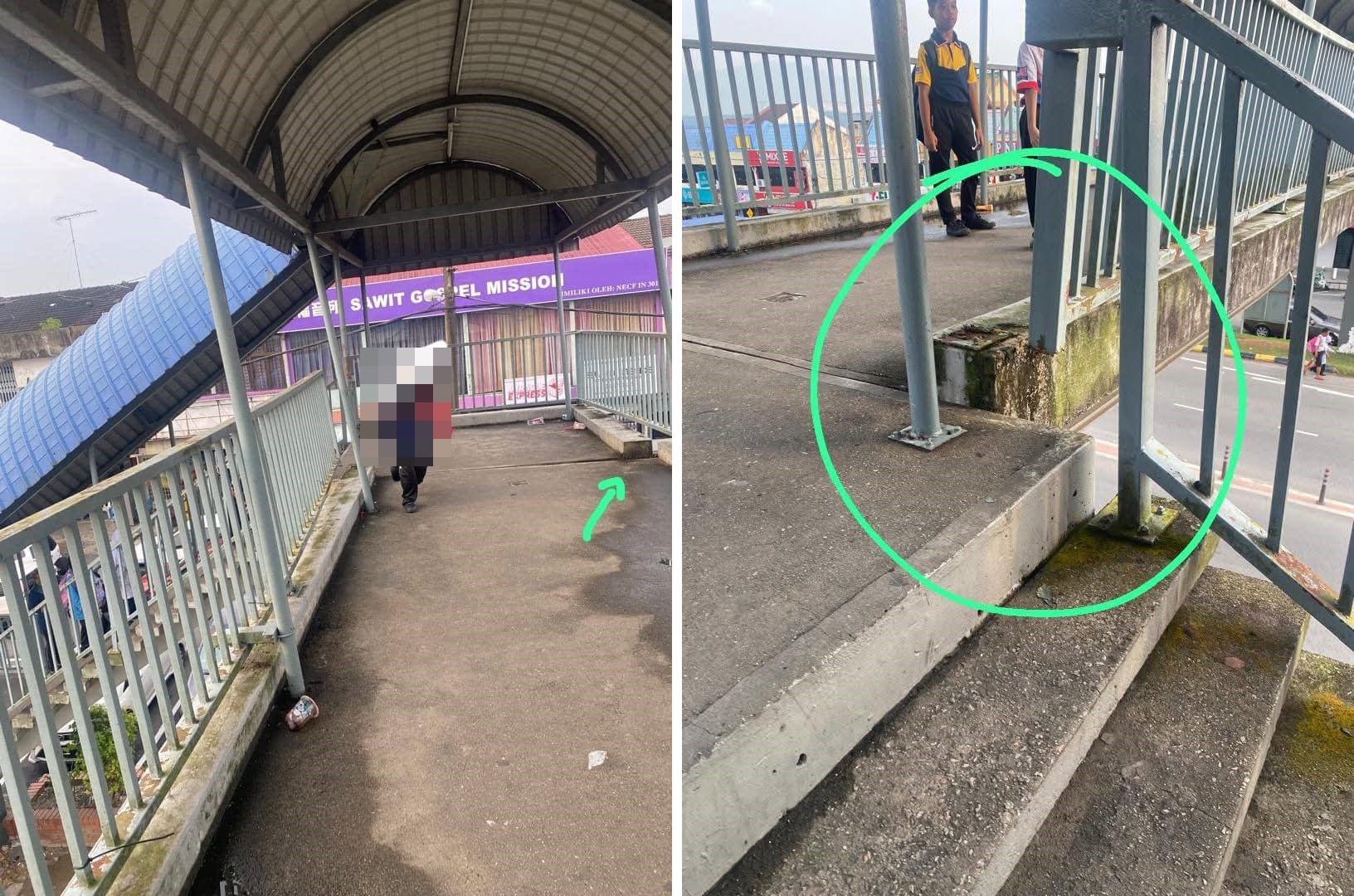 加拉巴沙威大街(Jalan Besar)靠近国小(SK Polis Kem)的行人天桥,日前有民众发现有移位现象,不仅出现裂缝,而且接缝处大裂口,令人担心结构不稳,而且行人也容易绊倒。