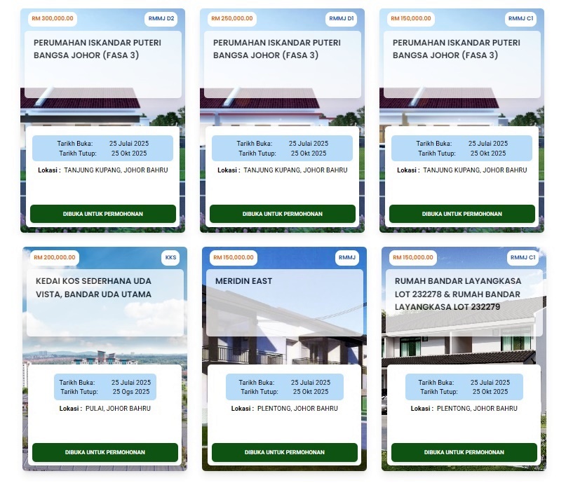 其他县的可负担房屋可浏览:https://erumah.johor.gov.my/main