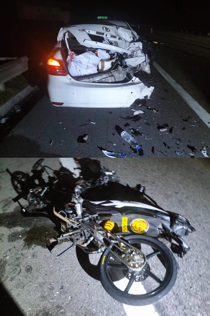 (峇株巴辖27日讯)轿车因引擎故障,停在紧急车道等候救援,结果青年摩哆骑士撞及送命。
