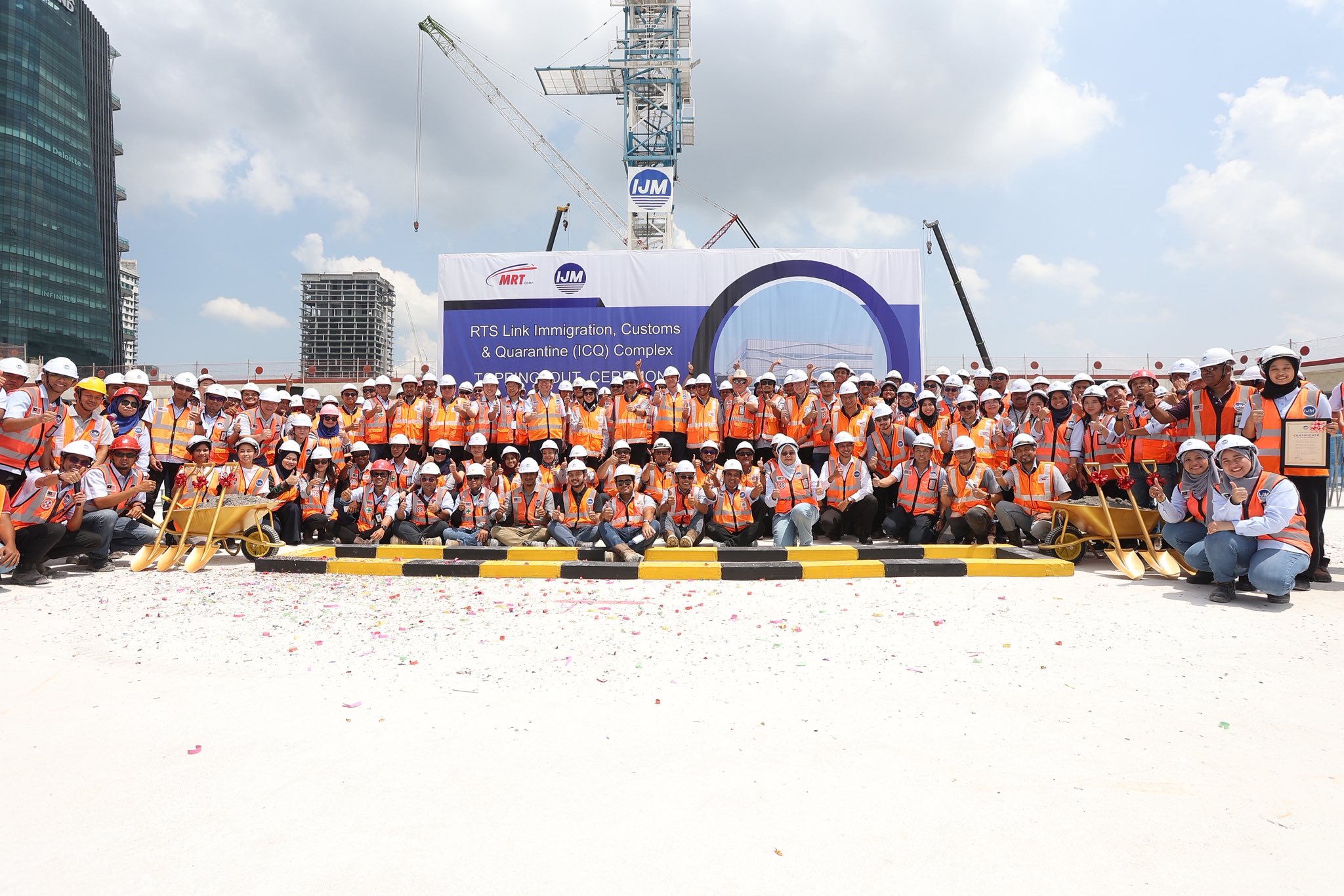 (新山29日讯)新柔捷运系统(RTS)位于武吉查卡的CIQ综合大楼已封顶,下个月将投入外墙工程和室内装修工程。