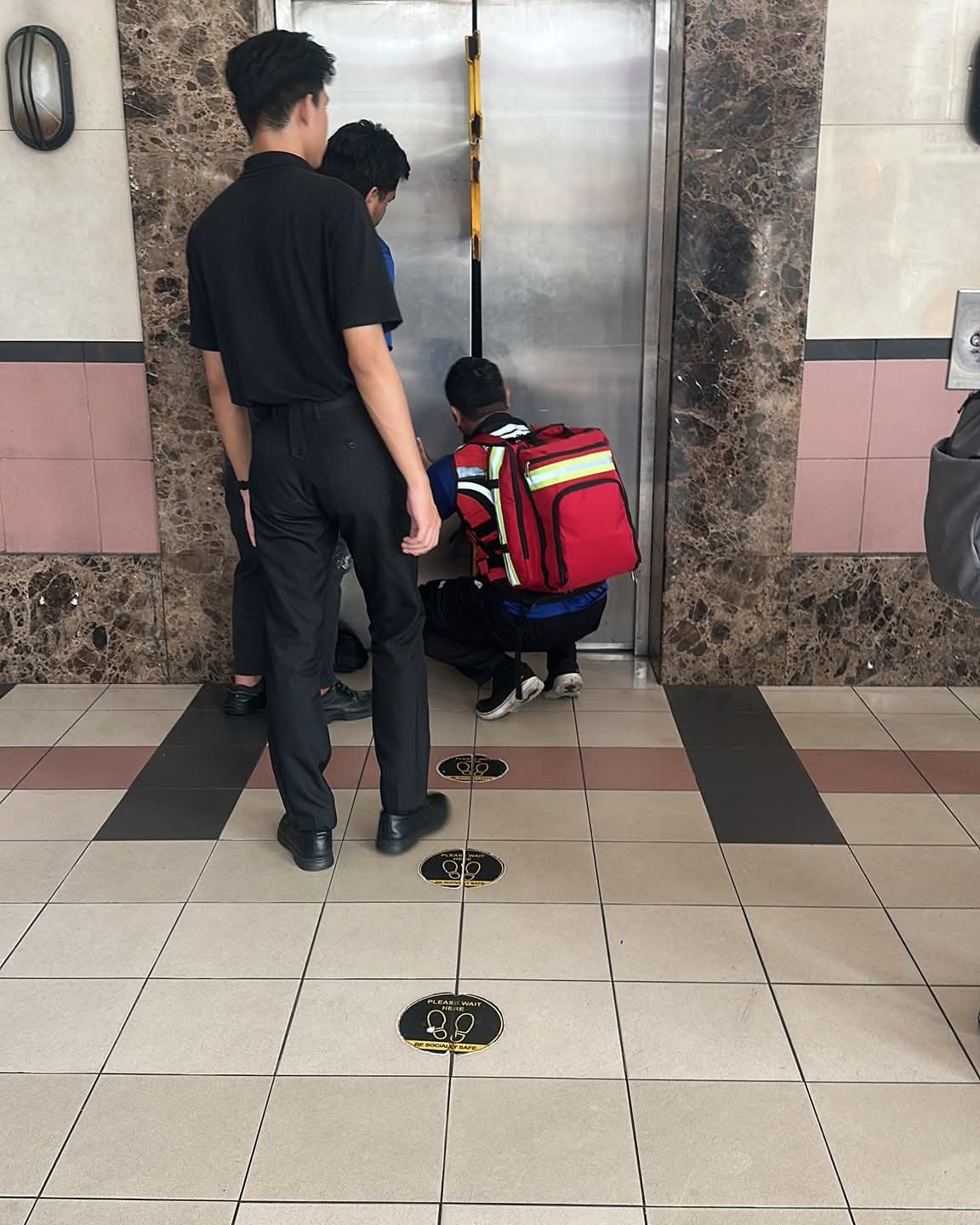 “Community Roda Johor”面子书分享,今早一群人被困在电梯里,没有保安人员或电梯技工,并没有即时到援助。