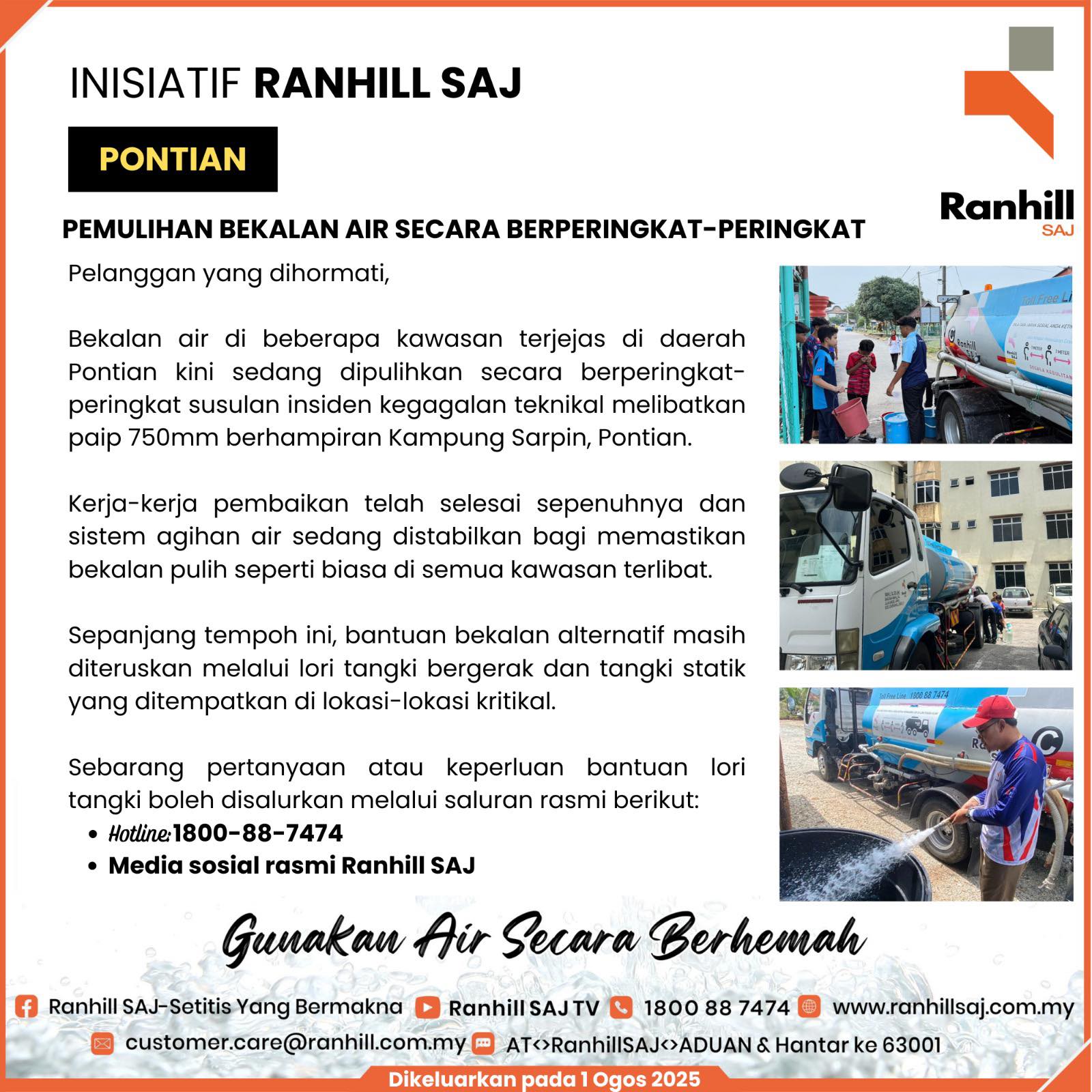 有鉴于柔佛人民对水供问题所表达的失望,殿下承诺将尽力协助解决这一问题。