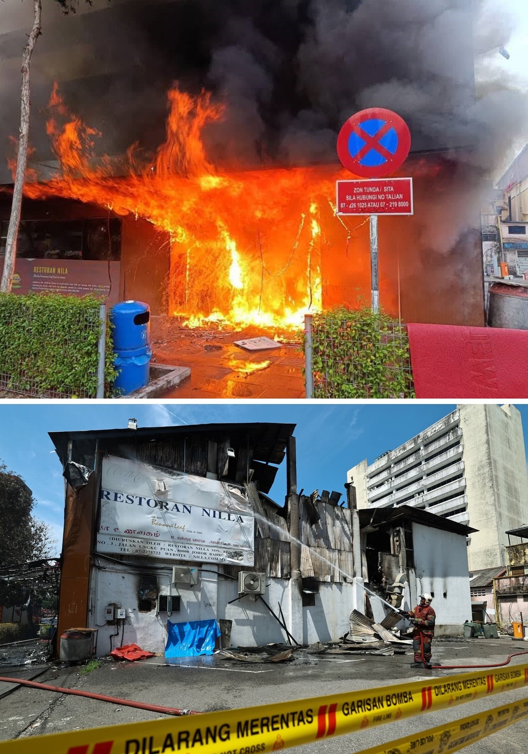 (新山2日讯)新山老街一早发生大火,一家餐馆和祭祀品陷入火海,年逾20年心血毁于一旦。