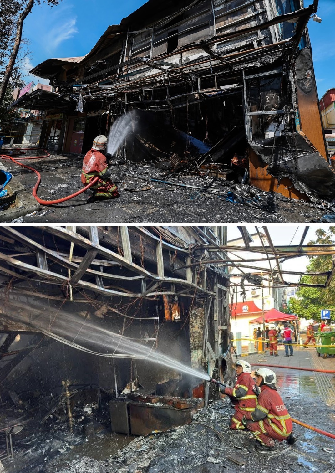消拯队抵达现场后,发现火灾涉及三个单位的店铺,每个店铺面积为22 x 70 x 18尺。