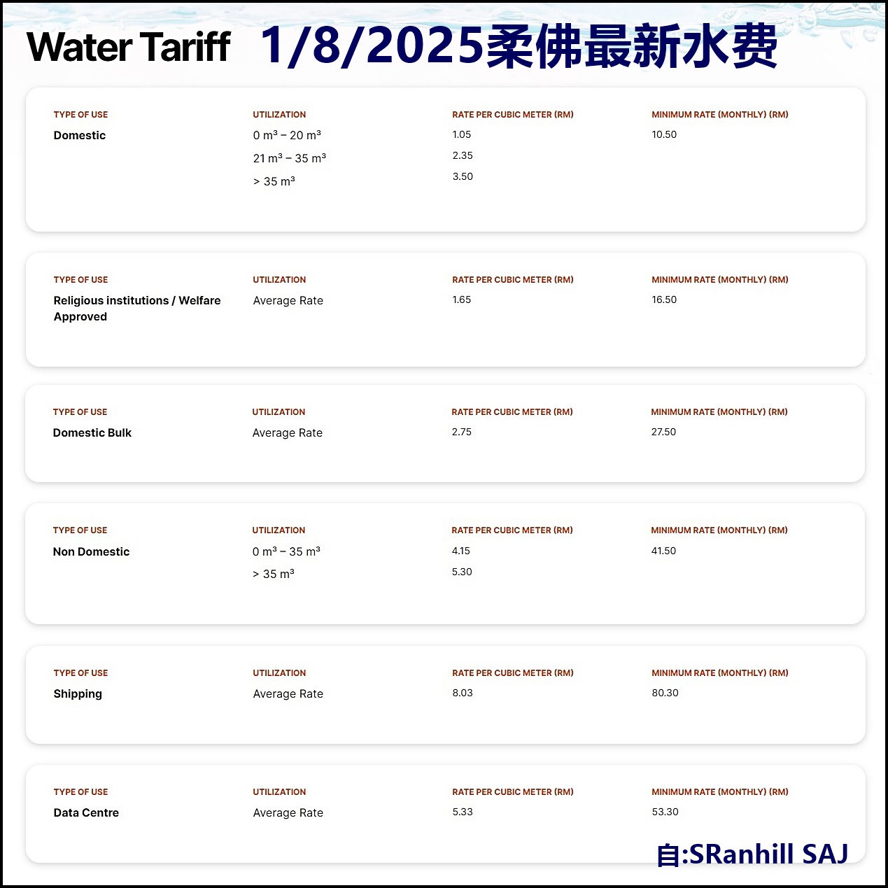 🚰非家庭用户🚰(上涨RM1─RM1.75不等)