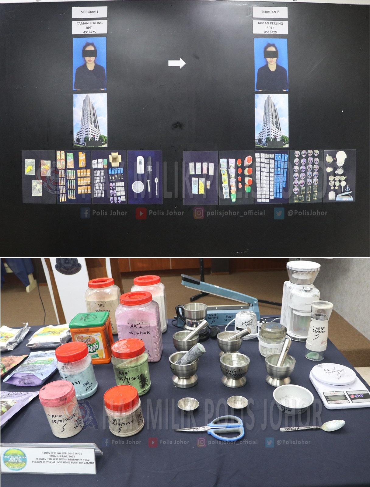 警方还起获各种毒品加工和重新包装设备,以及3000令吉现金、外国现金和各种珠宝,总值3万8555令吉60仙。