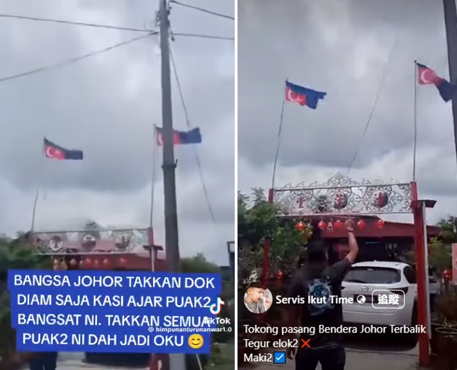 据了解,有关视频早在3月份流传,拍摄者发现柔佛州旗倒挂后,便直接前往神庙告知,并提醒庙方如果不知道如何正确挂旗,应该请教他人,而不是随心所欲(suka-suka)悬挂,庙方也当场致歉。