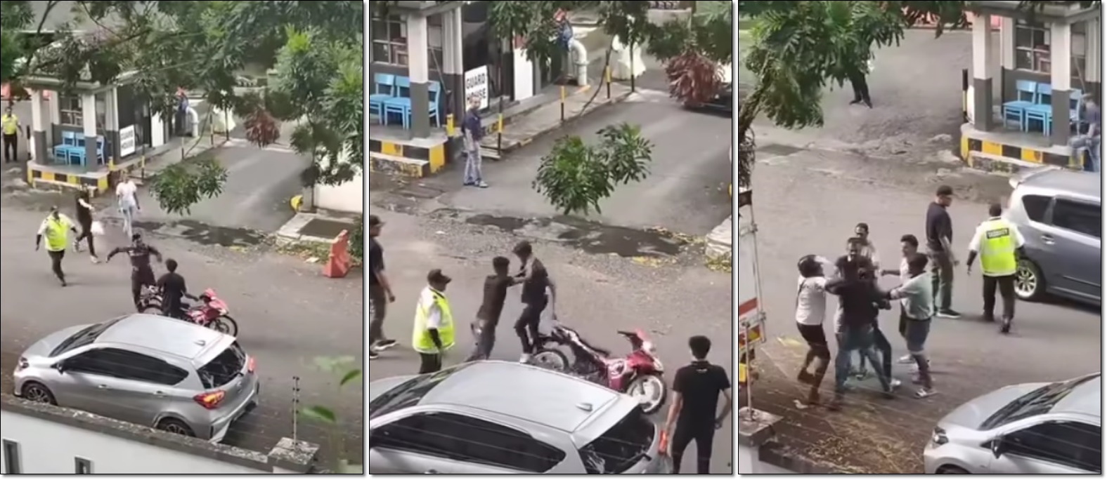 网上于今早流传视频,在Larkin Perdana路公寓的保安亭前,发生肢体冲突事件。