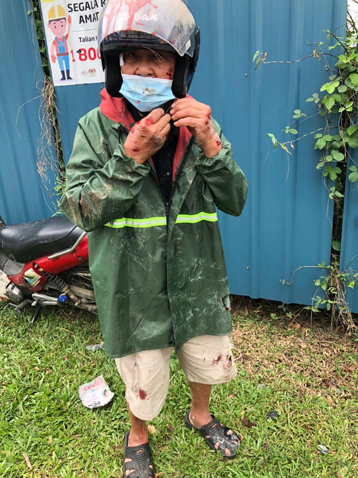 这造成骑摩哆途经的华裔大叔陈裕峰(译音)被石头绊倒,掉至全身伤痕累累,并送入医院治疗。事发时友族送餐员也停下施援手。