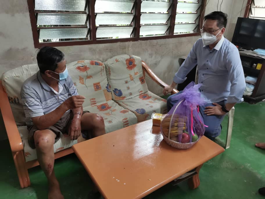 公正党武吉峇都区州议员潘伟斯前往拜访在家疗伤的大叔,得知对方是名建筑散工,估计要两个星期后才能渐康复工作。