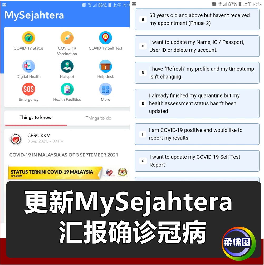 (一)从私人诊所、新冠肺炎评估中心(CAC)、医院或自我检测等,得知已感染冠病。