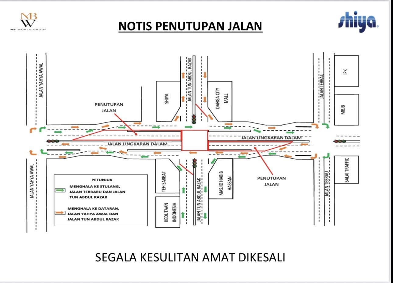 新山公共工程局(JKR)今日临时发出通告,指明天和后天(8月20日和21日),凌晨12时至5时,内环公路(FT188)将全面封路。