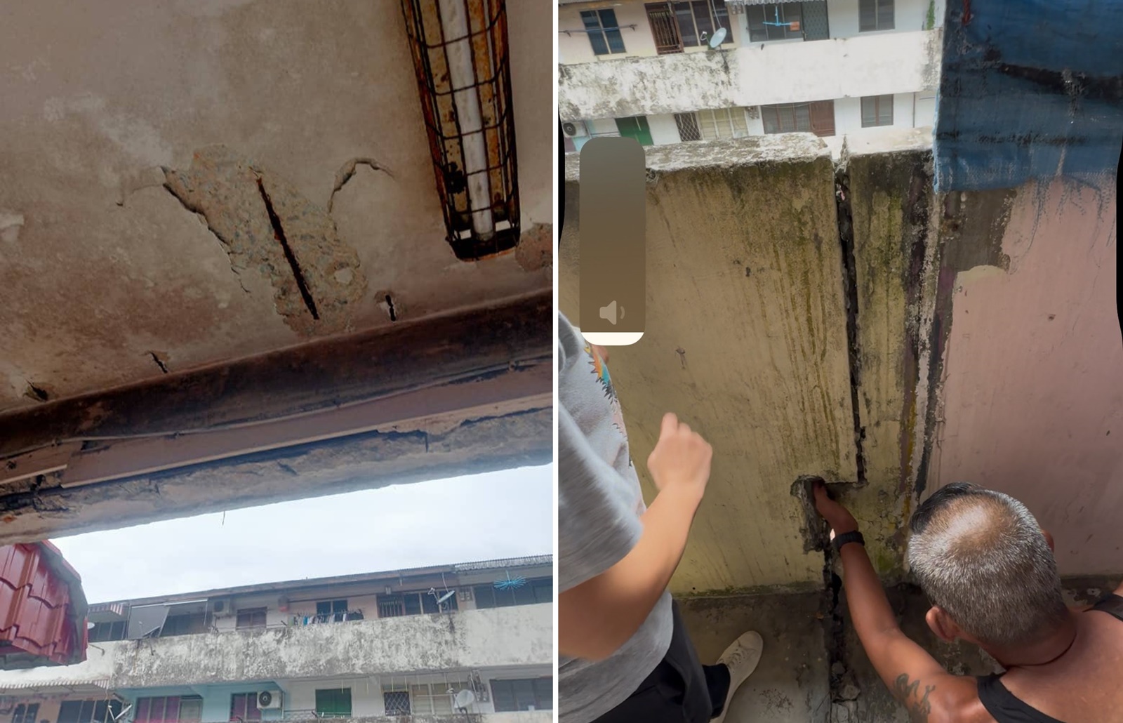 (新山25日讯)皇后花园第13座楼组屋,部分结构已经倾斜,混凝土钢筋也已经脆化易断裂, 须进行法证检测,以确定大楼的安全性。