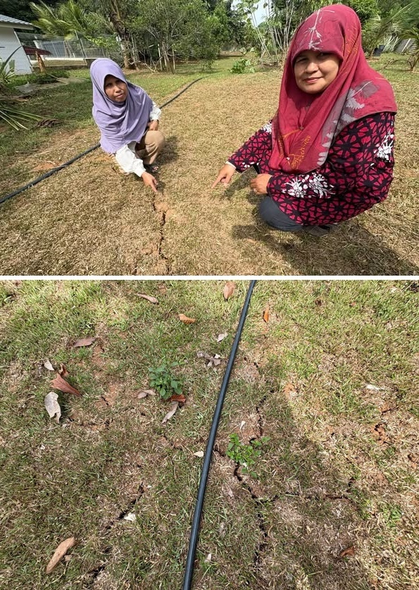 住在巫罗加什(Buloh Kasap)2英里房屋后方花园地面出现裂缝,相信是地震所引起。