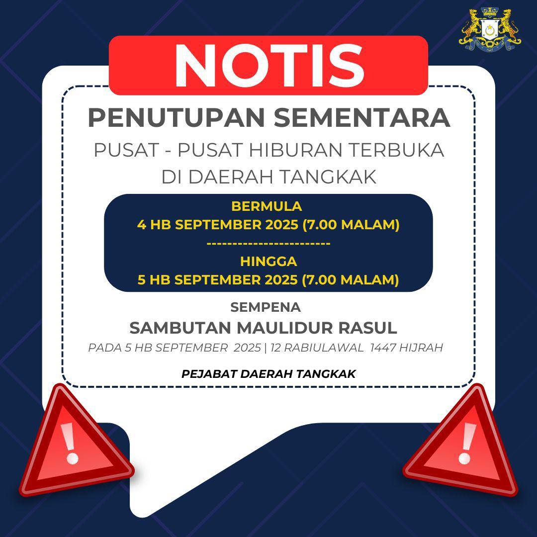 东甲县署指出,9月4日晚上7时,直到9月5日晚上7时,禁止公开娱乐活动,因此露天娱乐场所暂时关闭。