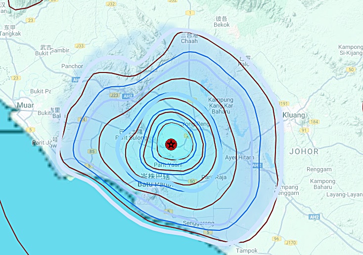 柔佛第七震 这次在峇株巴辖 1:57pm西部海域2.9级地震