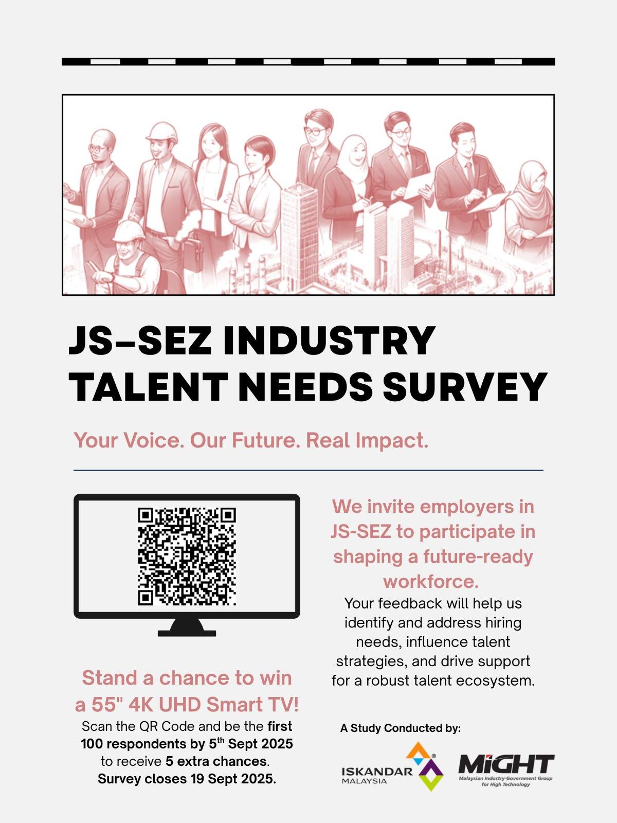 花30分钟时间填写问卷,就难以填补的职位和人才管理解决方案提供见解,以留住、吸引和培养柔佛─新加坡经济特区 (JS-SEZ) 的人才。