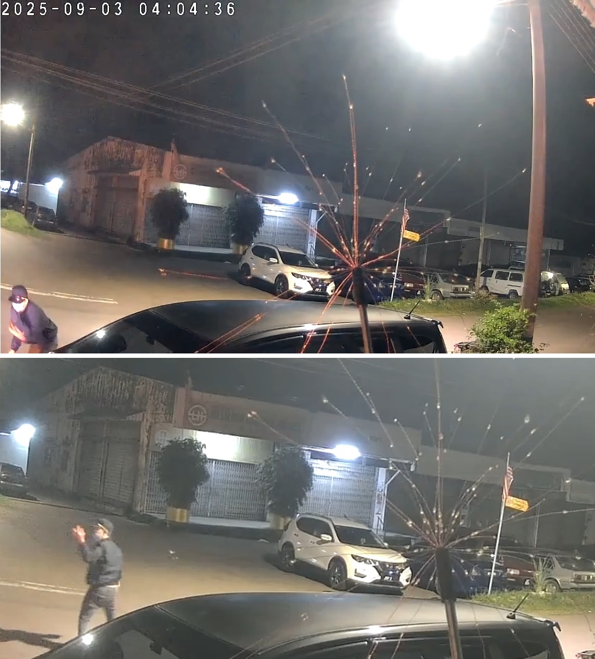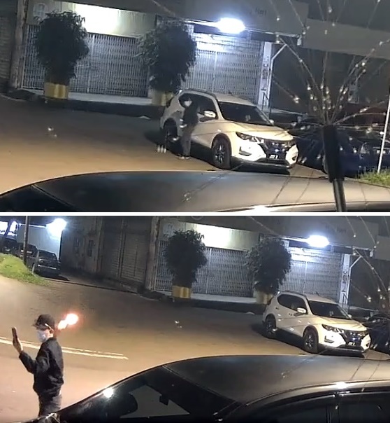 (居銮7日讯)又一宗!大耳窿跑腿连丢3个汽油弹,自拍干案过程,丢完拔腿就开车逃走!