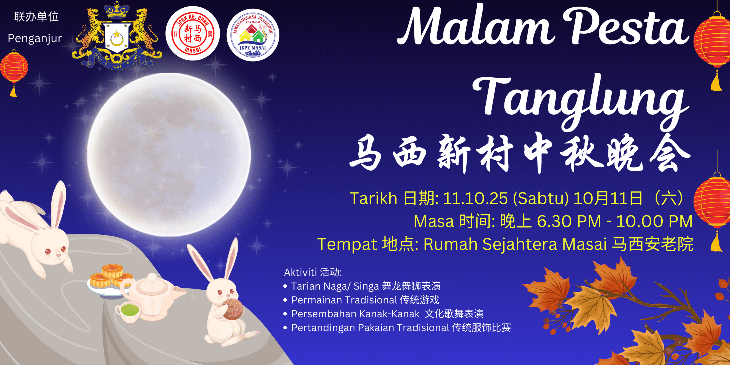 新山马西新村委员会今年中秋晚会的主题为“小小庆典,满满温情”,寓意虽然活动规模缩小,但温暖与关怀依旧不变。
