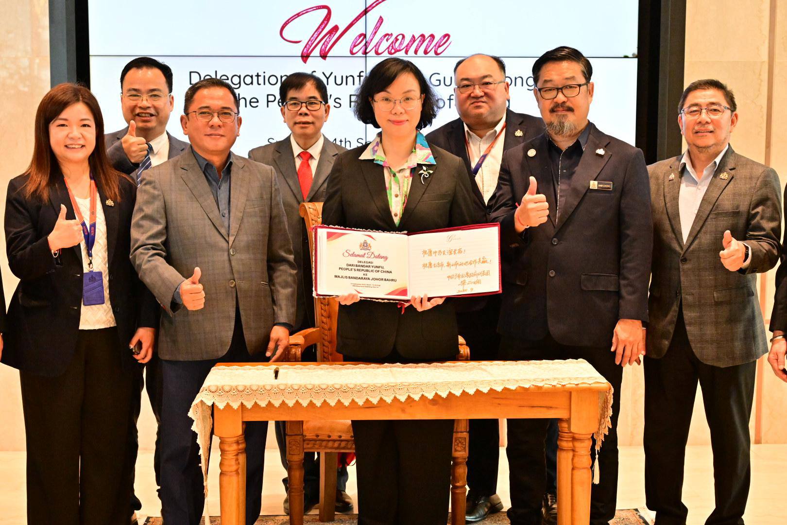 中国广东云浮市政协主席兼云浮公共外交协会会长梁丽娴,今日率领18名代表,抵达新山市政局(MBJB),获得新山市政局秘书Mohd Farid接待,陪同的有新山市议员庄世明、尤杰雄、张孳璘和黄有益等。
