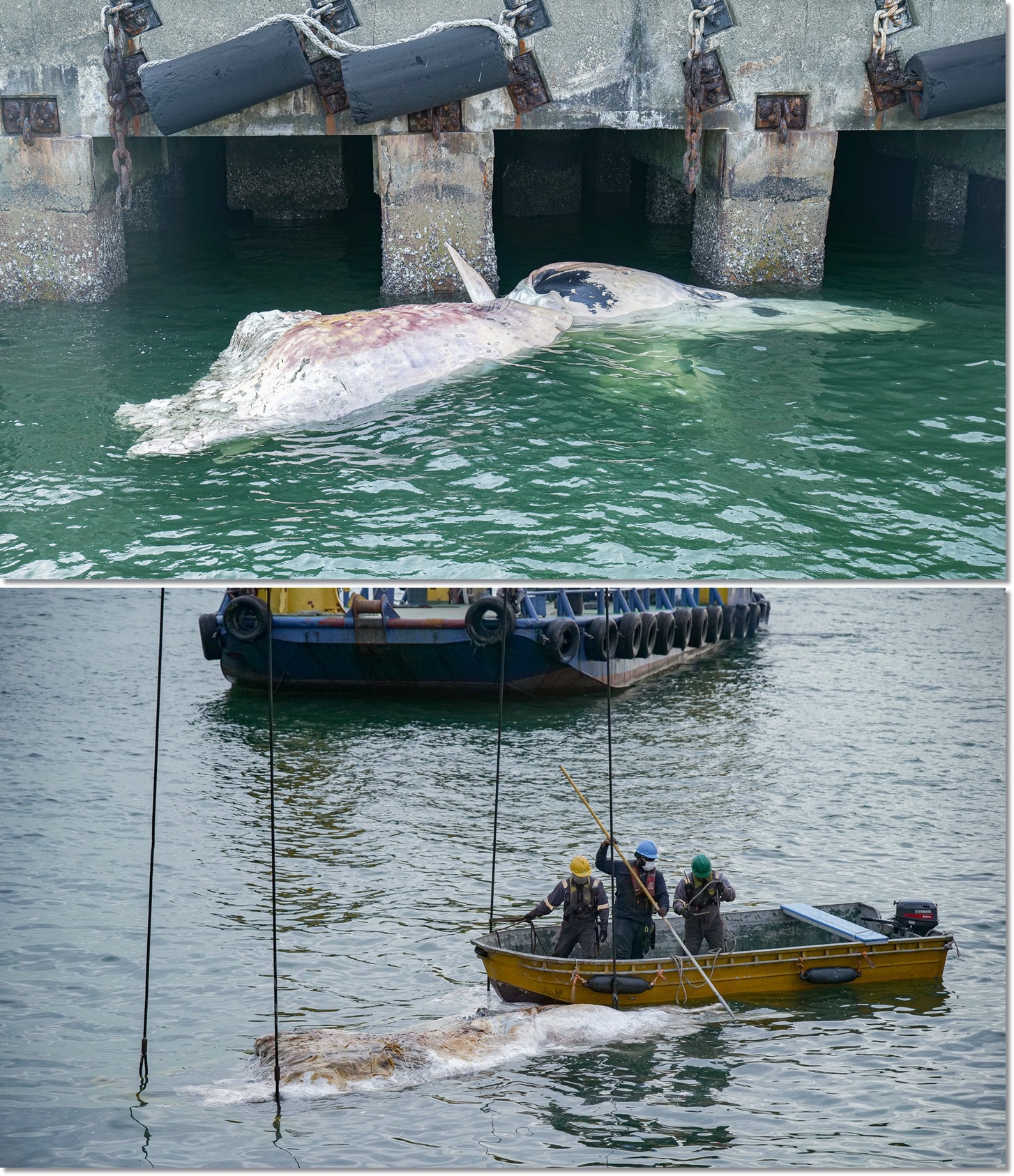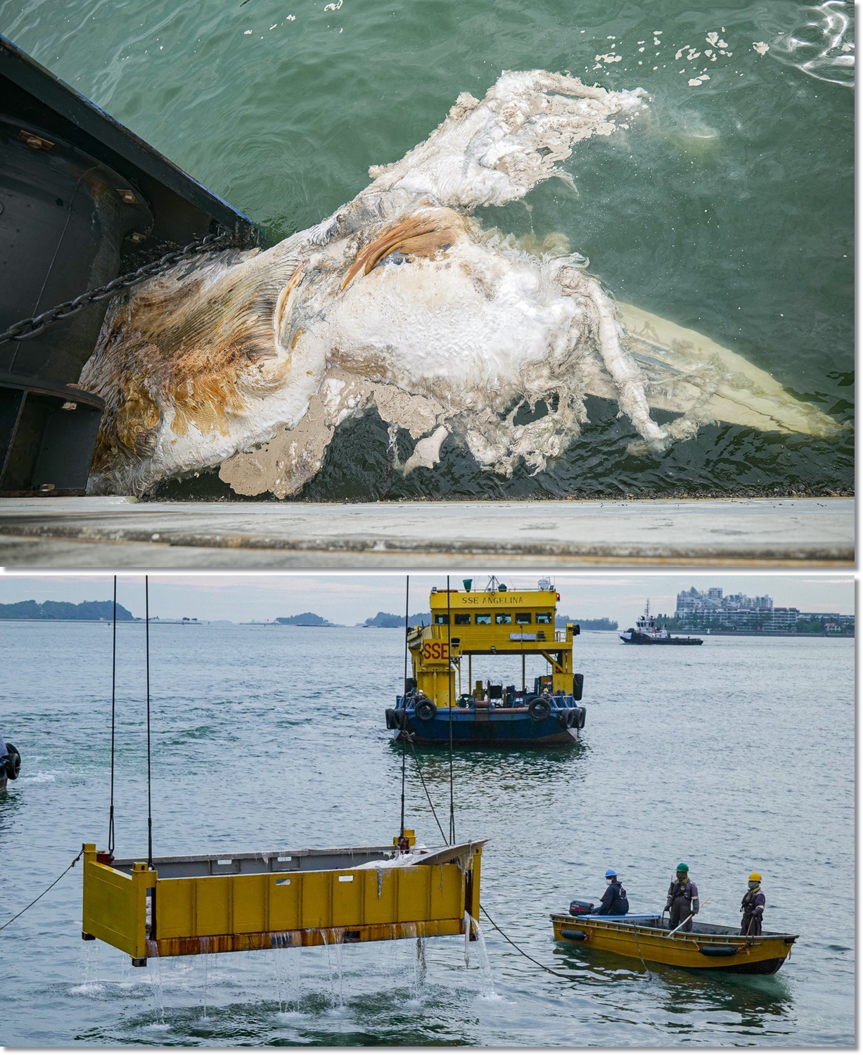 这头高度腐烂的须鲸(baleen whale),长6.3米,是于9月6日,在新加坡丹戎巴葛附近海域发现。