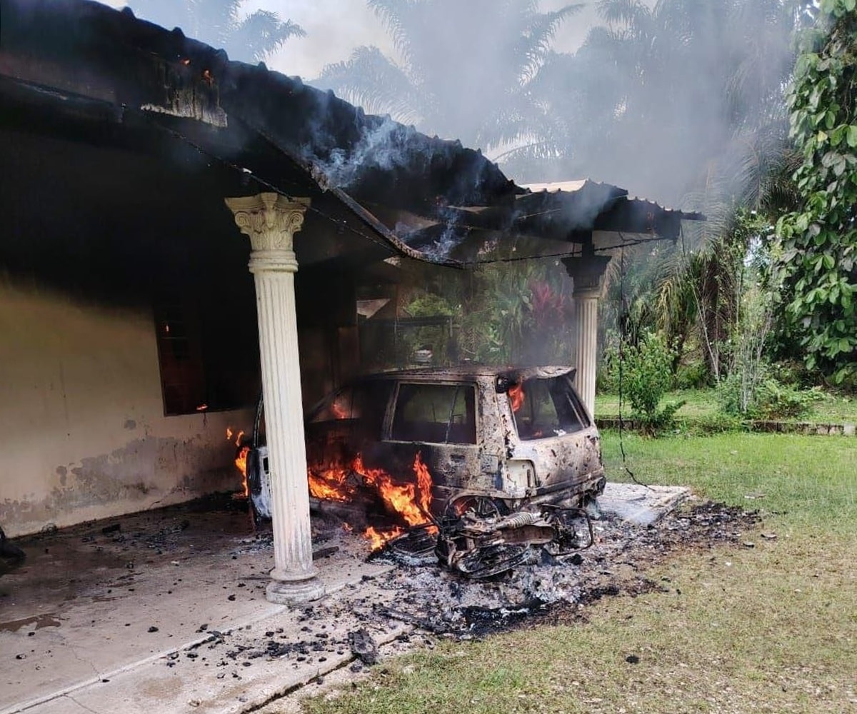麻坡警区主任Raiz Mukhliz发文告证实,火患还造成一辆轿车和一辆摩哆被烧,估计损失10万至15万令吉。
