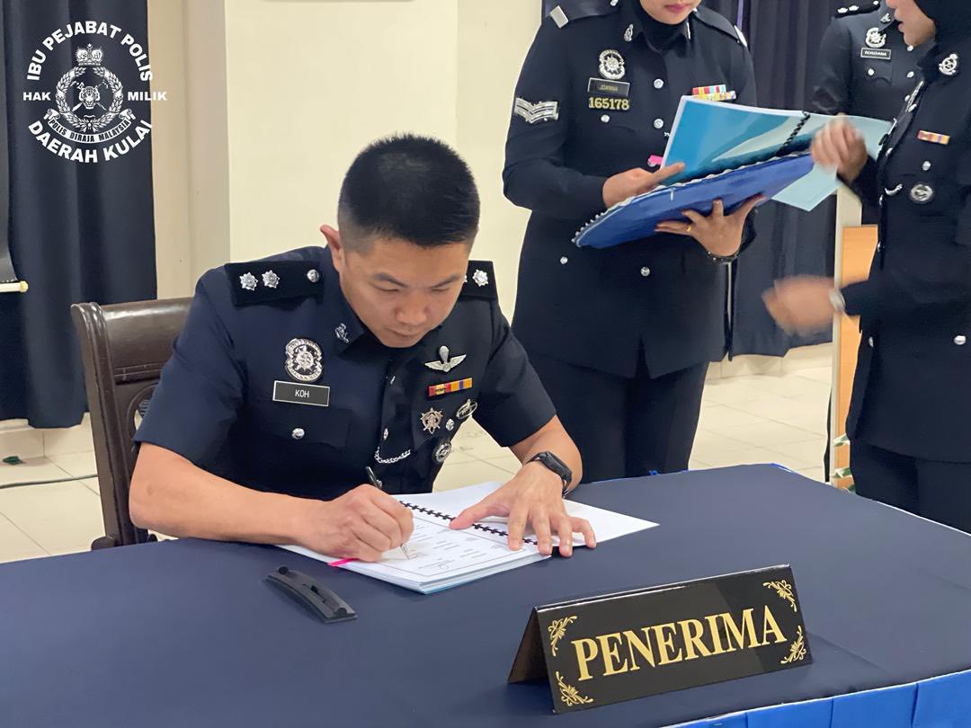 在古来警区主任陈胜利见证下,原任局长Mohd Azuan将职权移交给许佳耀警长。