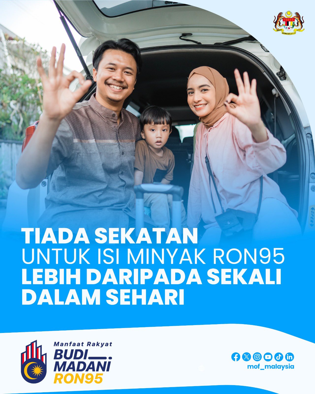 财政部今日发文强调,民众不需担心,因为政府并没有不限制,一名司机每天添 购RON95汽油的次数。