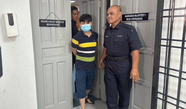 他今日被带上法庭面控,聆听通译员以华语说出控状后,不承认有罪。