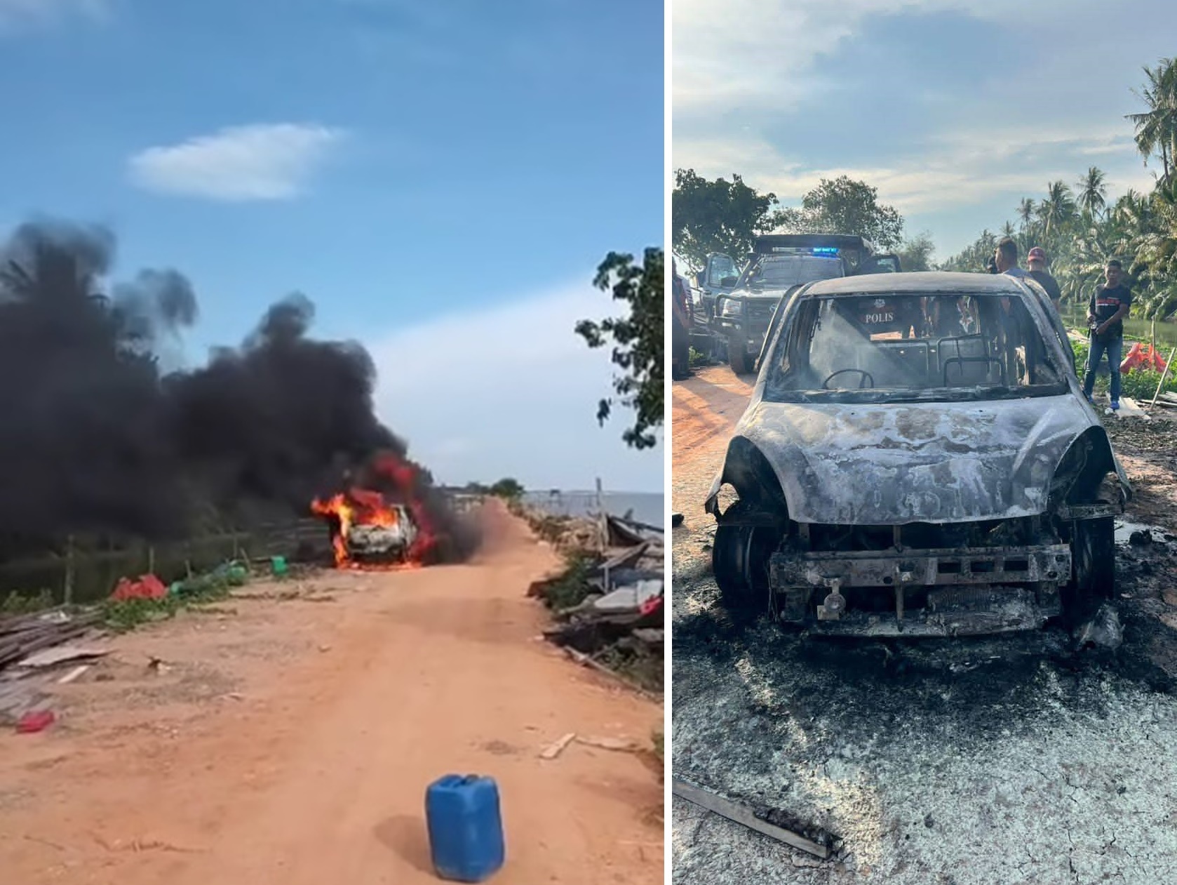 这宗火烧车命案,于昨午4时许,在帆加兰的双溪鲁律海边(Sungai Lurus)发生。