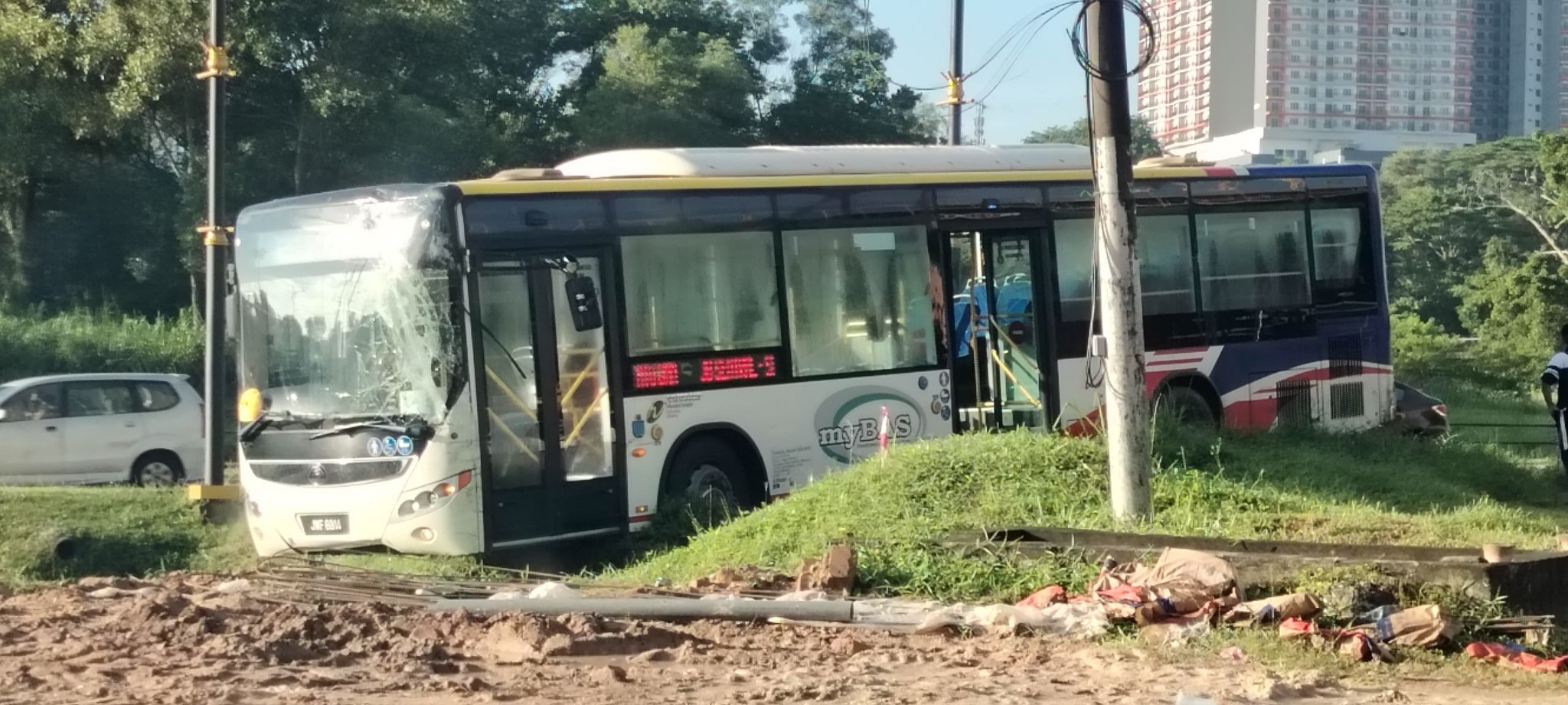 (新山4日讯)公共巴士失控险些撞进大沟,庆幸有惊无险,司机和2乘客无人受伤。