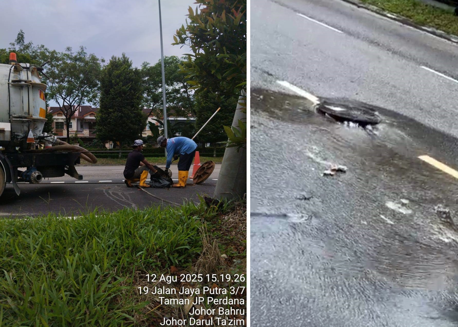 (新山5日讯)路面一再涌出污水,工人检查沙井(mamhole)后,竟发现塞满了建筑废料,谁丢的?