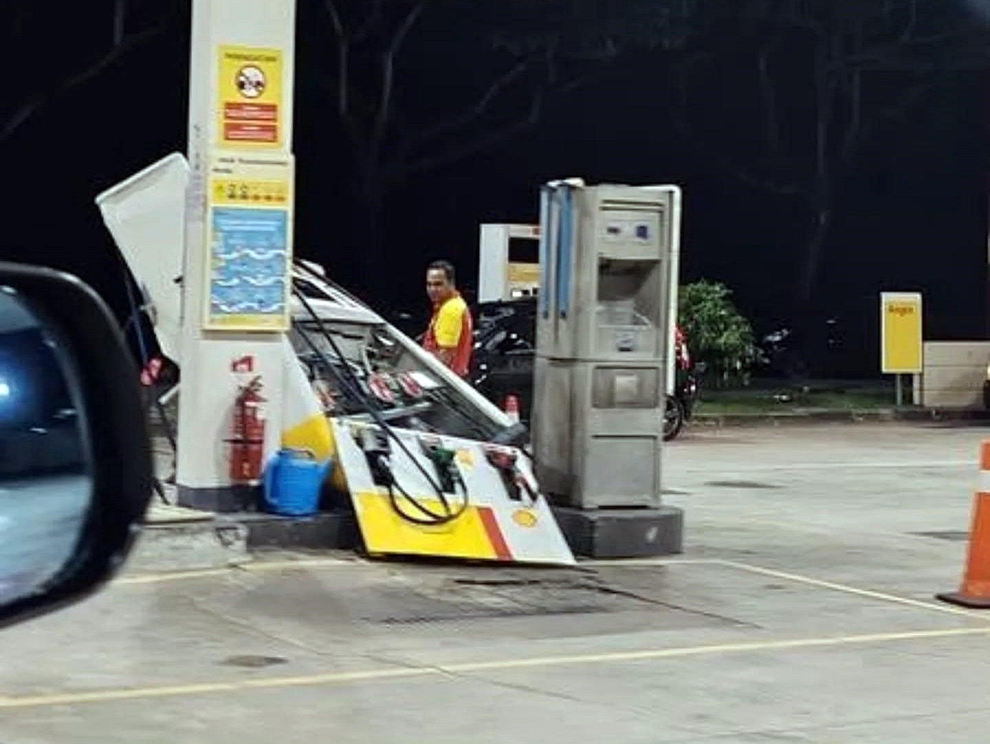 目击者说,事故导致涉事油泵受损,油站不得不暂时停止运营,以确保顾客和员工的安全。