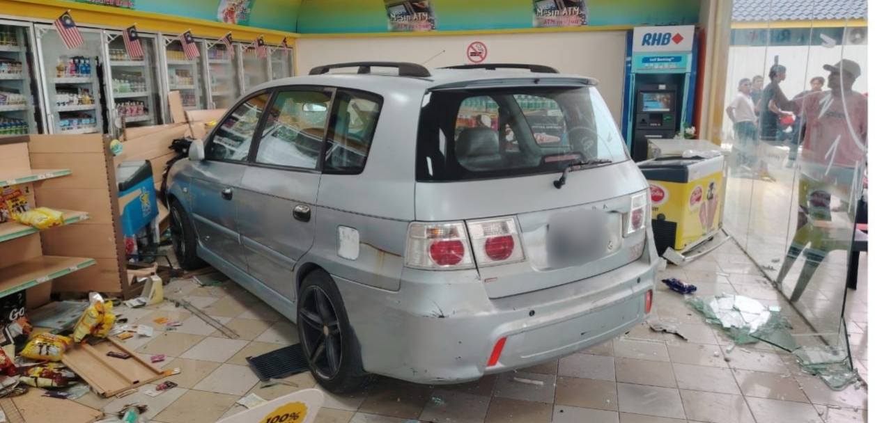 他说,警方于昨日上午10时50分,接获民众投报,指一KIA Citra轿车撞入油站内。