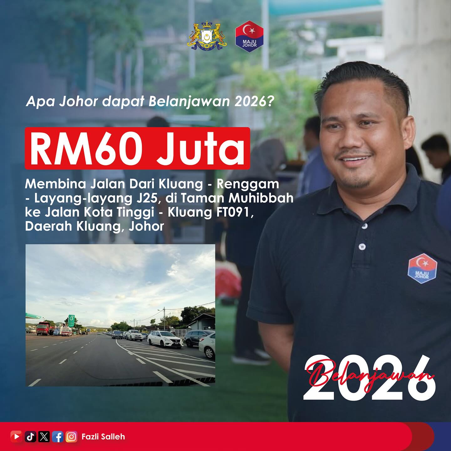 掌管柔佛公共工程、交通、基础建设及通讯事务的行政议员莫哈末法兹里发文指出,如今首相宣布有关拨款,对许多居銮居民来说,是翘首期盼这个好消息。
