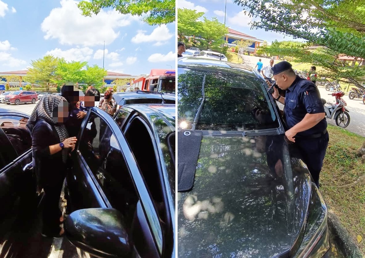 今日,实达英达花园警局(Balai Polis Taman Setia Indah)防范罪案巡逻警察Muhaizad伍长、Chris Hazel普通警员接获紧投报,指在福林园陆路交通局的泊车场,有2名孩童困在车内。