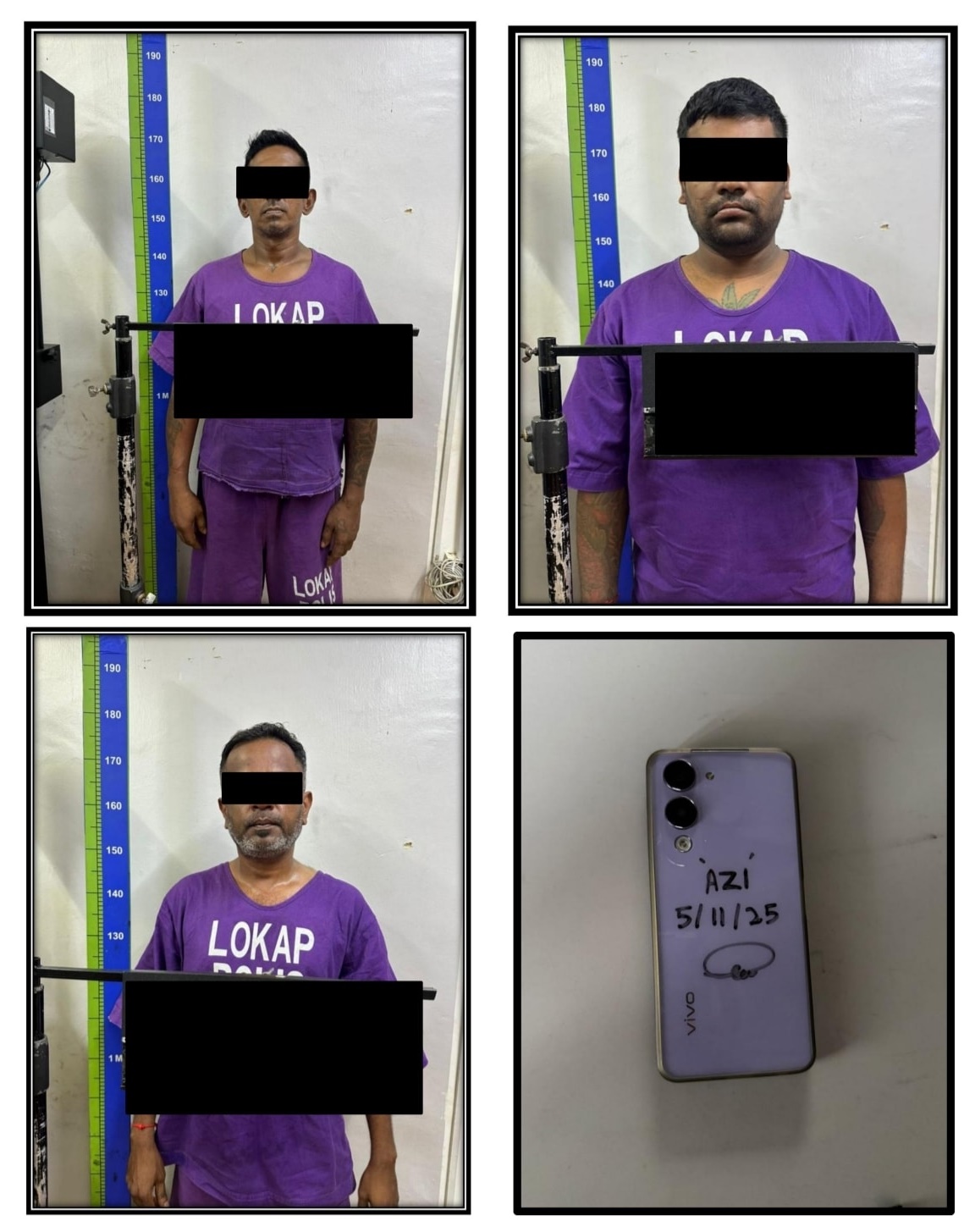 (居銮7日讯)3个大男人竟在游乐场结伙抢劫,警方接获报一天后捉人,起获事主手机。