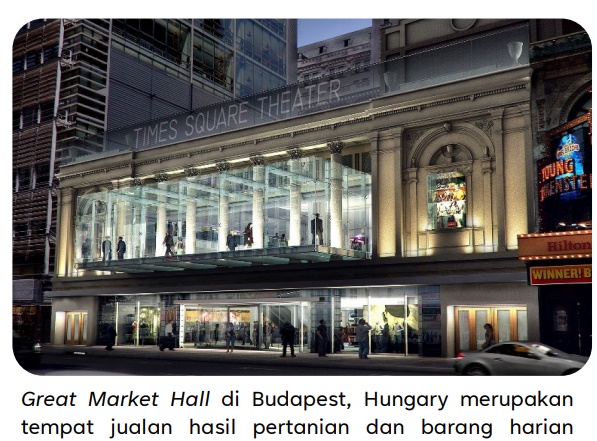 匈牙利布达佩斯的大市场(Great Market Hall)是一个着名的农产品和日用品市场,也可作为百老汇电影院部份建筑改造的概念。