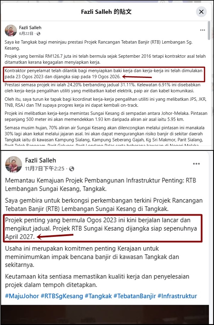 早前(今年6月),掌管柔佛公共工程、交通、基础建设及通讯事务的行政议员法兹里指出,委任新的承包商后,工程于2023年8月23日重新启动,完工日期为2026年8月19日。