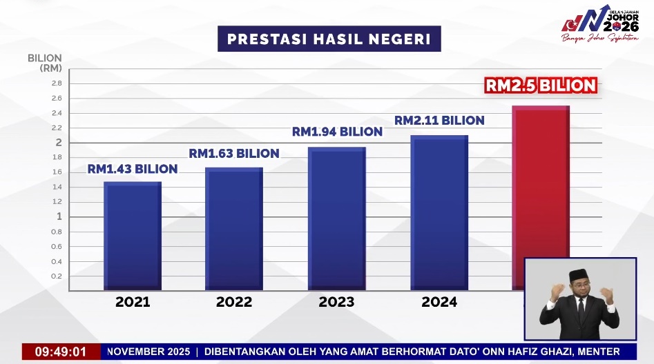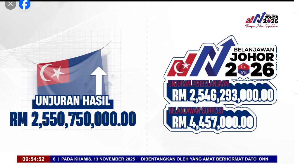 (新山13日讯)柔佛州务大臣今天公布了“2026年柔佛财政预算案”,预计明年收入将达到25亿5000万令吉,缔造有史以来最高收入纪录。柔佛爱心援助拨款近1亿7000万令吉,估计33万人直接受惠。